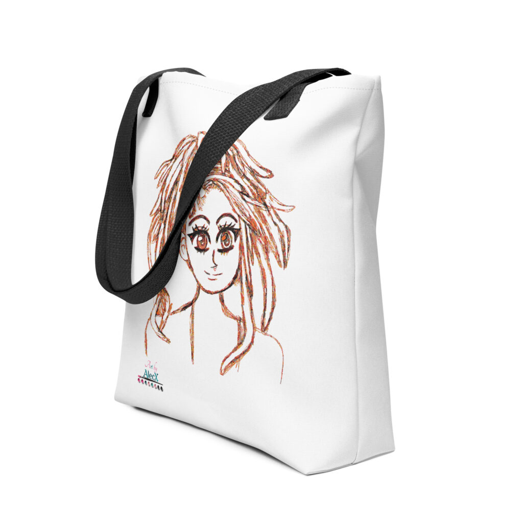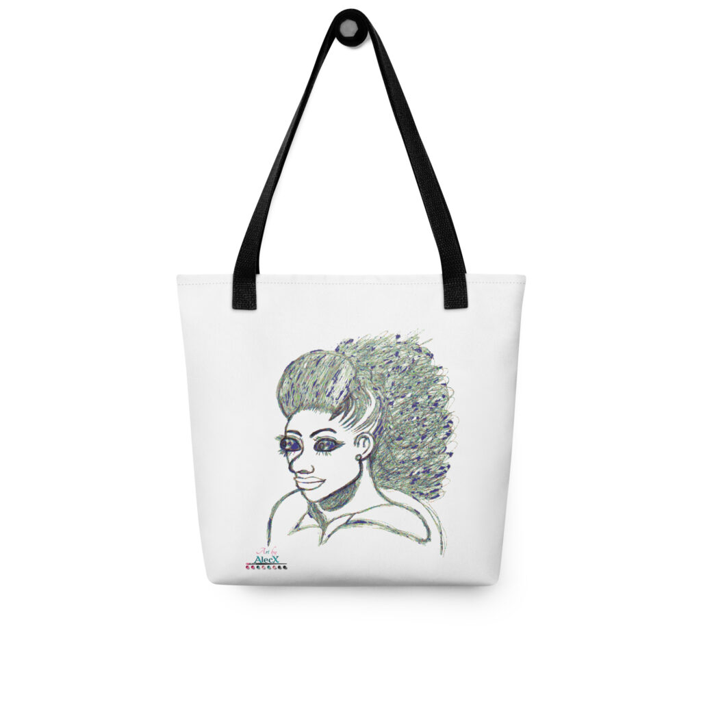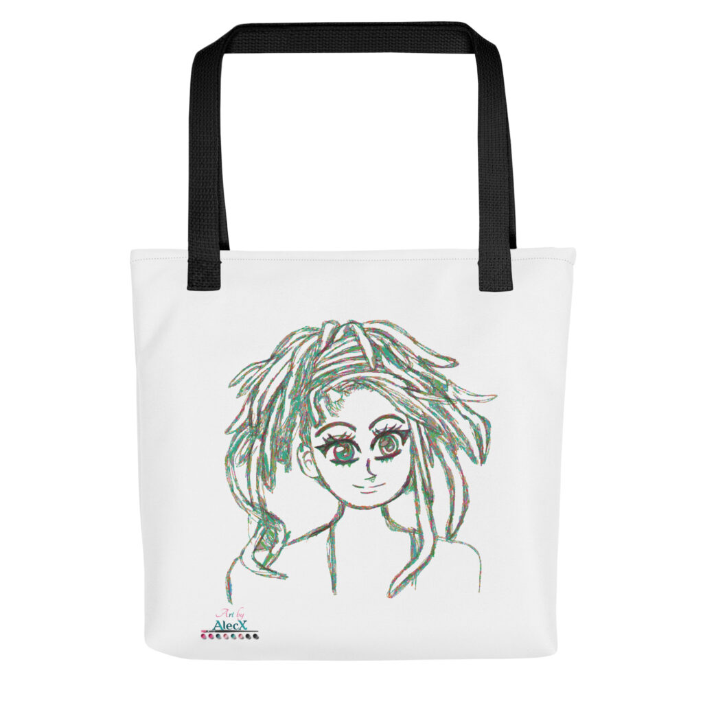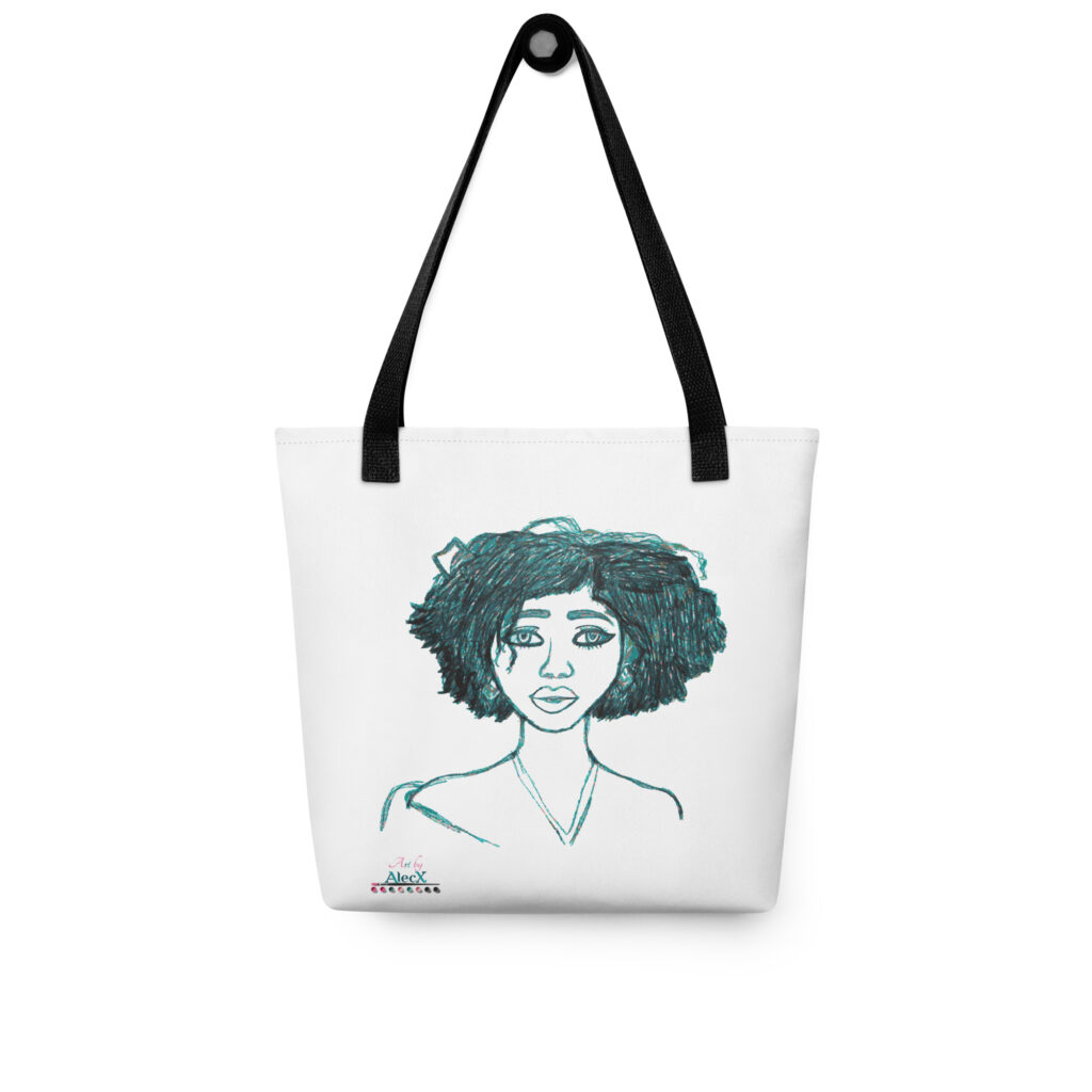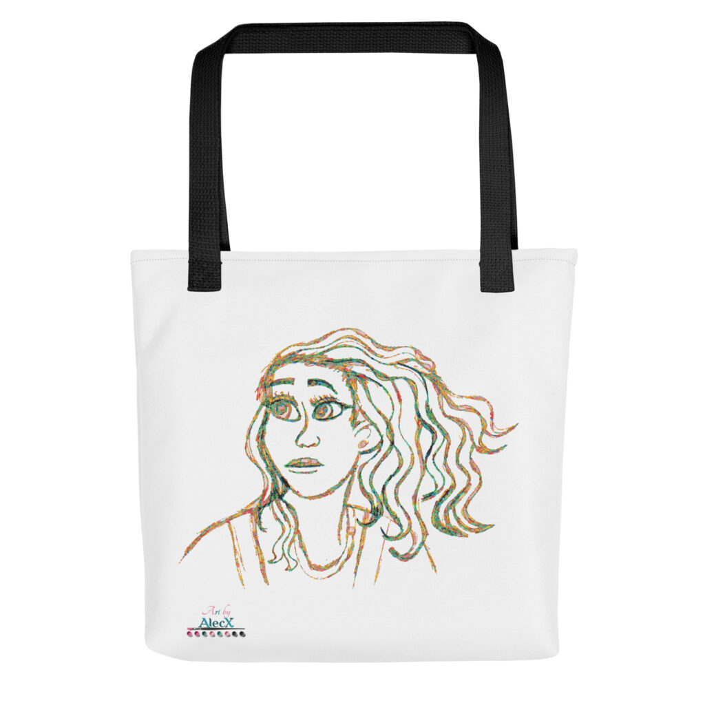 Each tote features Alecx's unique artwork, beautifully displayed on durable, stylish bags perfect for everyday use.